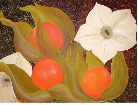 Physalis mit Frucht und Blüte